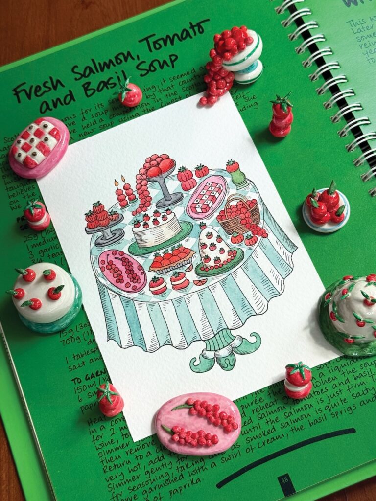 This year, I’ve been exploring illustration beyond the flat surface, using 3D clay sculptures as a new canvas for visual storytelling. By applying hand-drawn elements directly onto sculpted forms. This exploration naturally led me to combine illustration with other tactile mediums – including pastry and miniature sculpture – creating a unified practice that brings together food, form, and illustration into one continuous narrative.