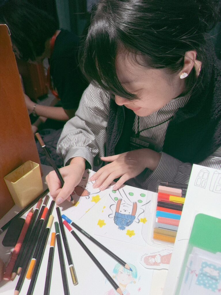 Hsiung Dafu is an illustrator and handmade artist known for depicting everyday life with warmth and gentle brushstrokes. Her works, often created with watercolor and delicate linework, evoke a sense of comfort and charm while capturing emotional connections between people and animals. Her signature “portrait illustration” series is beloved at art markets, especially among couples, families, and pet owners. She is also the creator of “Quilt Bear” — a 195 cm tall white bear with a chubby face who’s afraid of the cold, symbolizing tenderness and companionship. Beyond illustration, Hsiung Dafu designs magnets, charms, postcards, and crochet pieces that blend storytelling with collectibility, showcasing her playful imagination. Her creations radiate humor and warmth, gently reminding viewers of the quiet happiness found in everyday life.